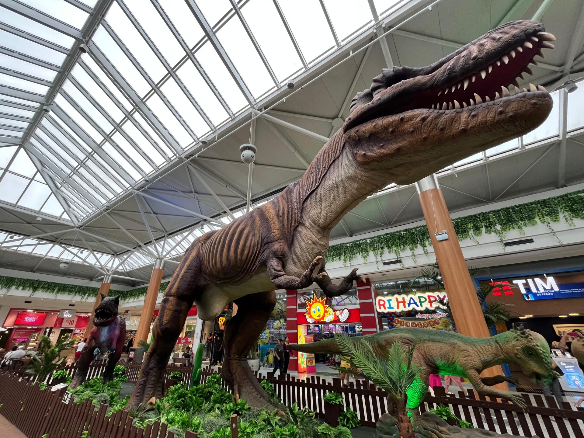 Com entrada gratuita, a mostra ocupa a Praça de Eventos do shopping e conta com 12 réplicas realistas de dinossauros em tamanho natural, som e movimentos, criando uma experiência imersiva e educativa. Entre os destaques está o icônico Tiranossauro Rex, uma imponente réplica com 13 metros de comprimento e 6 metros de altura, que promete roubar a cena e impressionar visitantes de todas as idades.
