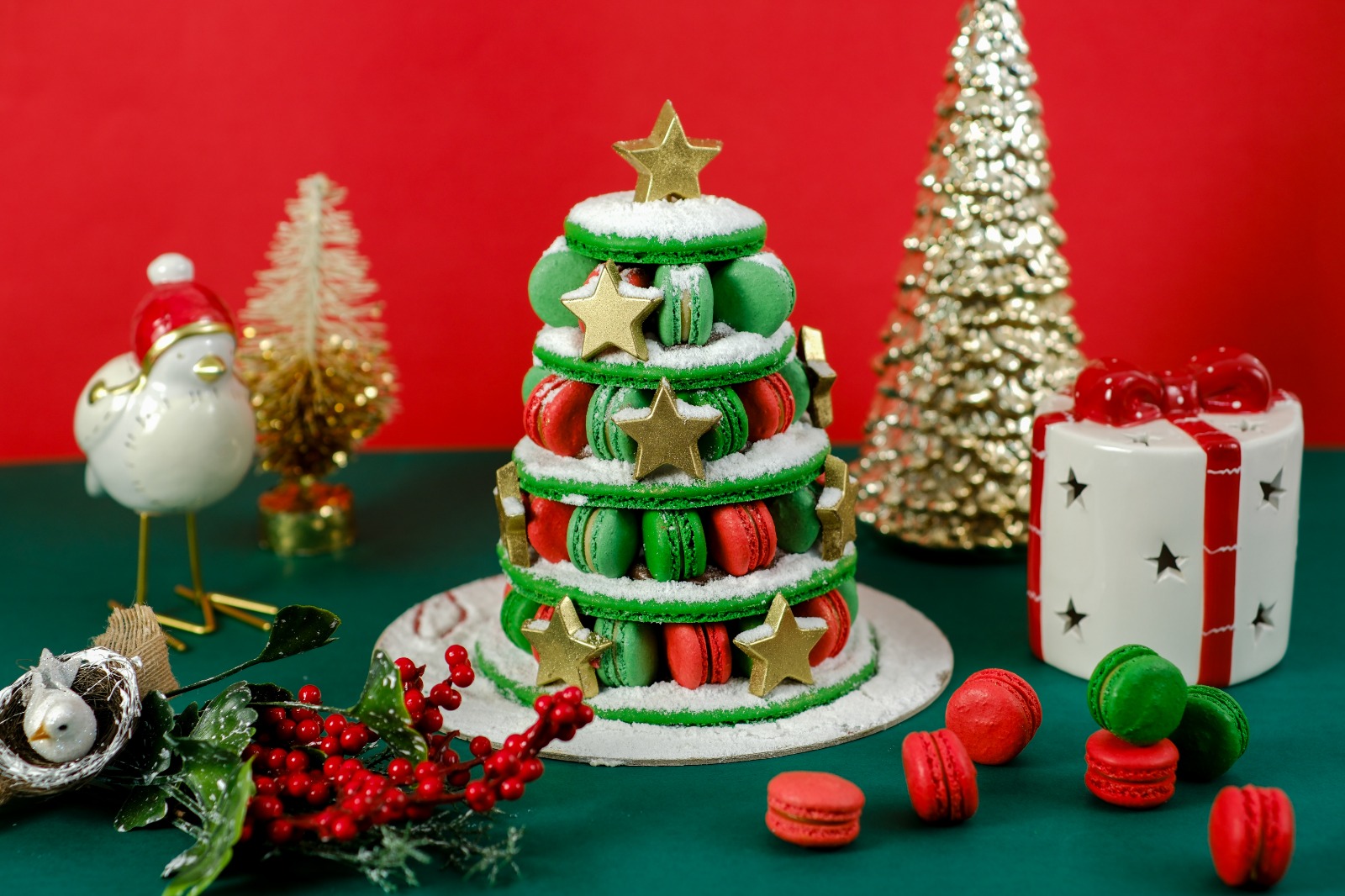 - Torre Estrela composta por cinco big macarons intercalados com mini macarons, formando uma árvore de Natal finalizada com estrela de chocolate (R$ 159).