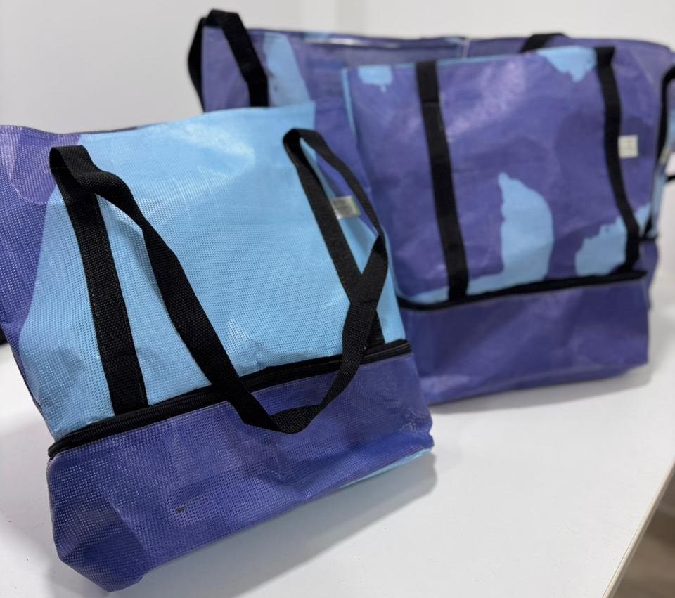 - Produção a cooperativa transforma o material em bolsas de praia resistentes e com design autoral
