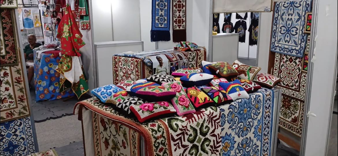 A feira traz a produção das tapeceiras de Lagoa do Carro (PE) e representantes de vários estados do Brasil. A realização é da Associação das Tapeceiras de Lagoa do Carro – ASTALC em parceria com a PROVENTUS.