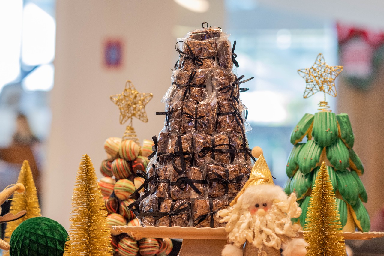- Árvore de Brownie Fit (R$ 240) — 30 cm de altura, coberta com 40 unidades do brownie do Café KM, versão sem açúcar, sem lactose e sem glúten.