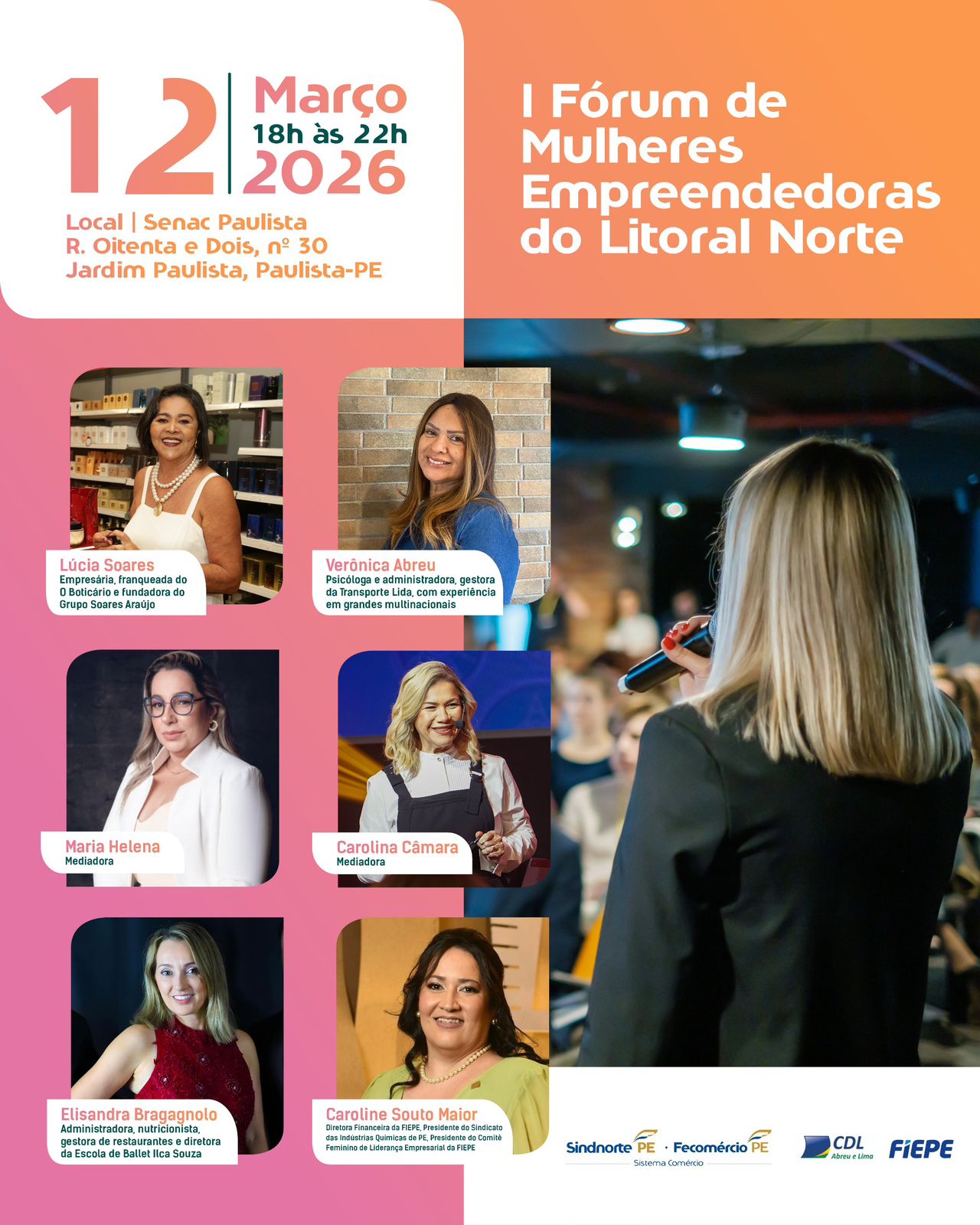 Representatividade e desenvolvimento são pontos destacados pelos organizadores. Evandro Lima, vice-presidente do Sindnorte e presidente da CDL Abreu e Lima, ressaltou a expectativa de alcançar mulheres de todo o Litoral Norte e valorizar o empreendedorismo feminino. “Esse evento foi pensado para alcançar mulheres de todo o Litoral Norte, não apenas em alusão ao Mês da Mulher, mas também como uma forma de valorizar o empreendedorismo feminino e trazer temas relevantes para o debate entre elas. Vamos discutir a reforma tributária e a atualização da NR-1”.