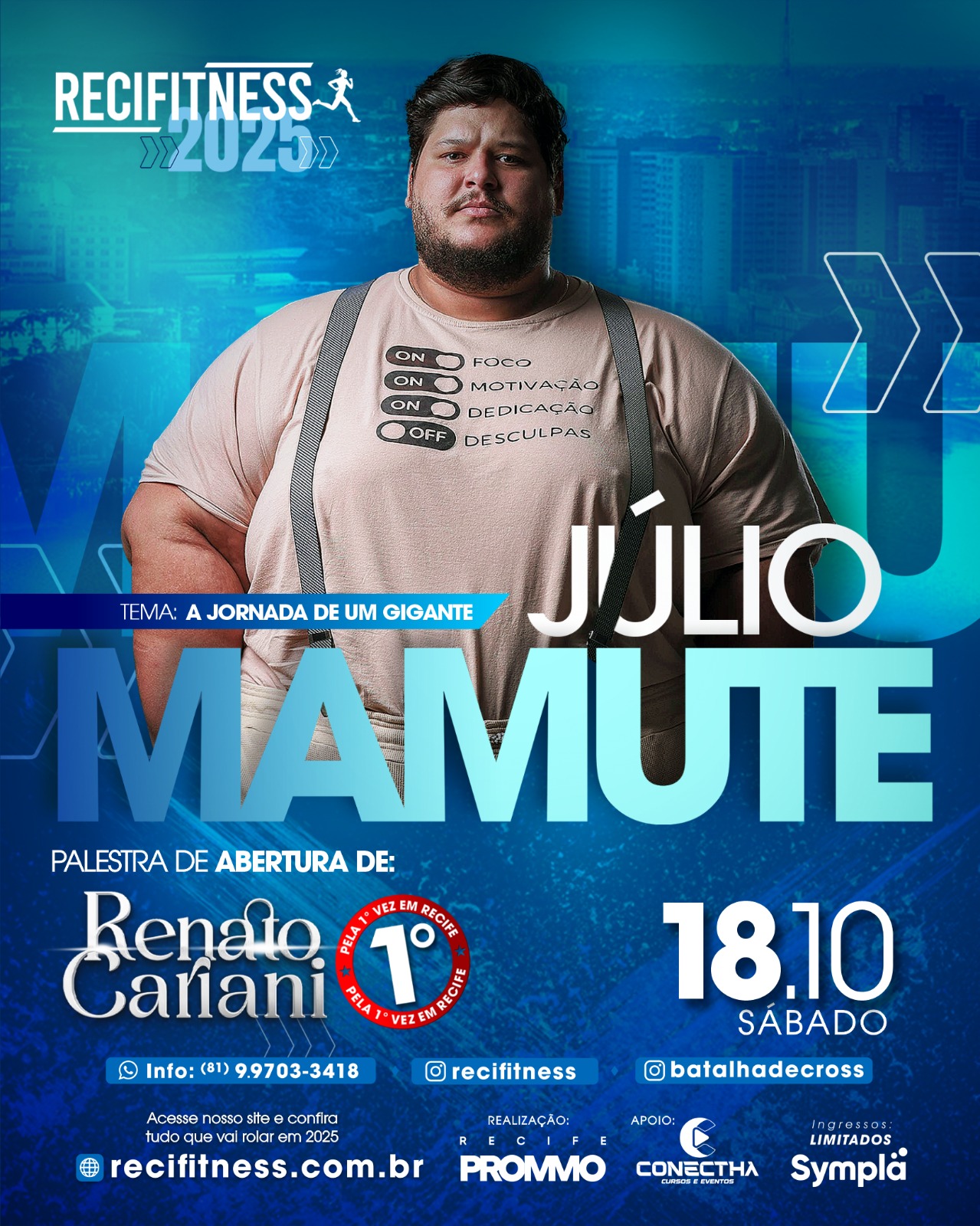 “Será uma honra participar da Recifitness, um evento que é referência para quem ama saúde, bem-estar e performance. Estar na abertura da palestra do Renato Cariani, que é um ícone no Brasil, torna esse momento ainda mais especial para mim e para o público,” afirma Júlio Mamute.