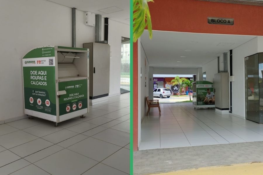 O Pátio Aurora Open Mall, em Paulista, conta com um Ponto de Entrega Voluntária (PEV) do Repense Reuse, iniciativa da Humana Brasil dedicada à coleta têxtil e à logística reversa.
