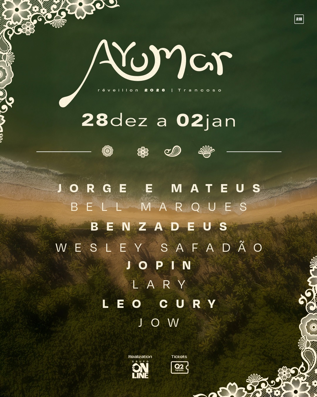 A primeira edição do Réveillon Ayumar desembarca em Trancoso, um dos destinos mais desejados do Brasil, conhecido por suas praias paradisíacas, charme natural e atmosfera sofisticada. Inspirado em expressões de origem tupi, o festival propõe uma virada marcada por significado, música e experiências premium.