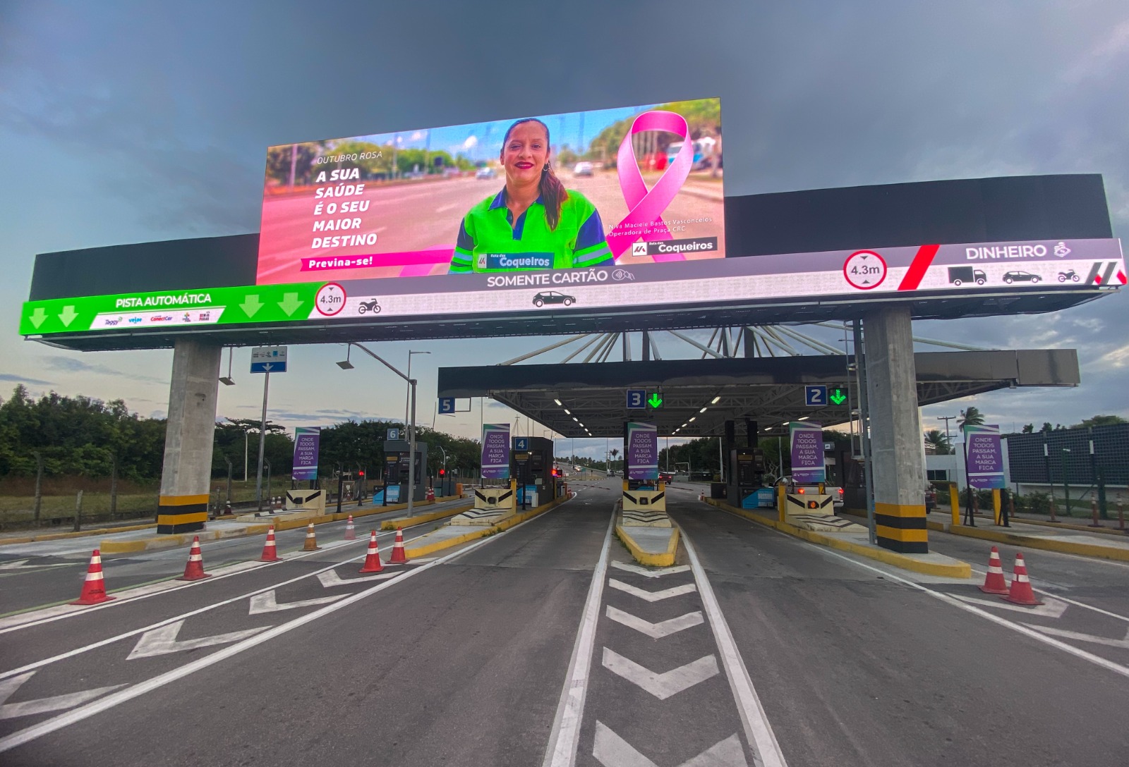 Os telões exibem conteúdos que reforçam a importância da prevenção e do diagnóstico precoce, destacando o cuidado com a saúde da mulher e com a segurança nas estradas. Os materiais são ilustrados por colaboradores das concessionárias e veiculados nas praças de pedágio para alcançar motoristas e passageiros.