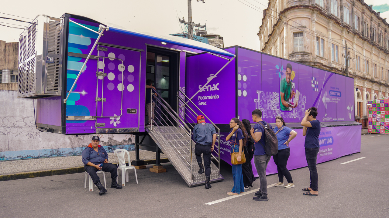 As unidades móveis de educação profissional aproximam conhecimento e prática por meio de ambientes equipados para atividades técnicas e criativas. A carreta Smart Lab traz vivências em tecnologia, design e jogos digitais, enquanto a unidade móvel de Gastronomia foca em demonstrações culinárias e oficinas práticas voltadas à qualificação no segmento de alimentos e bebidas.