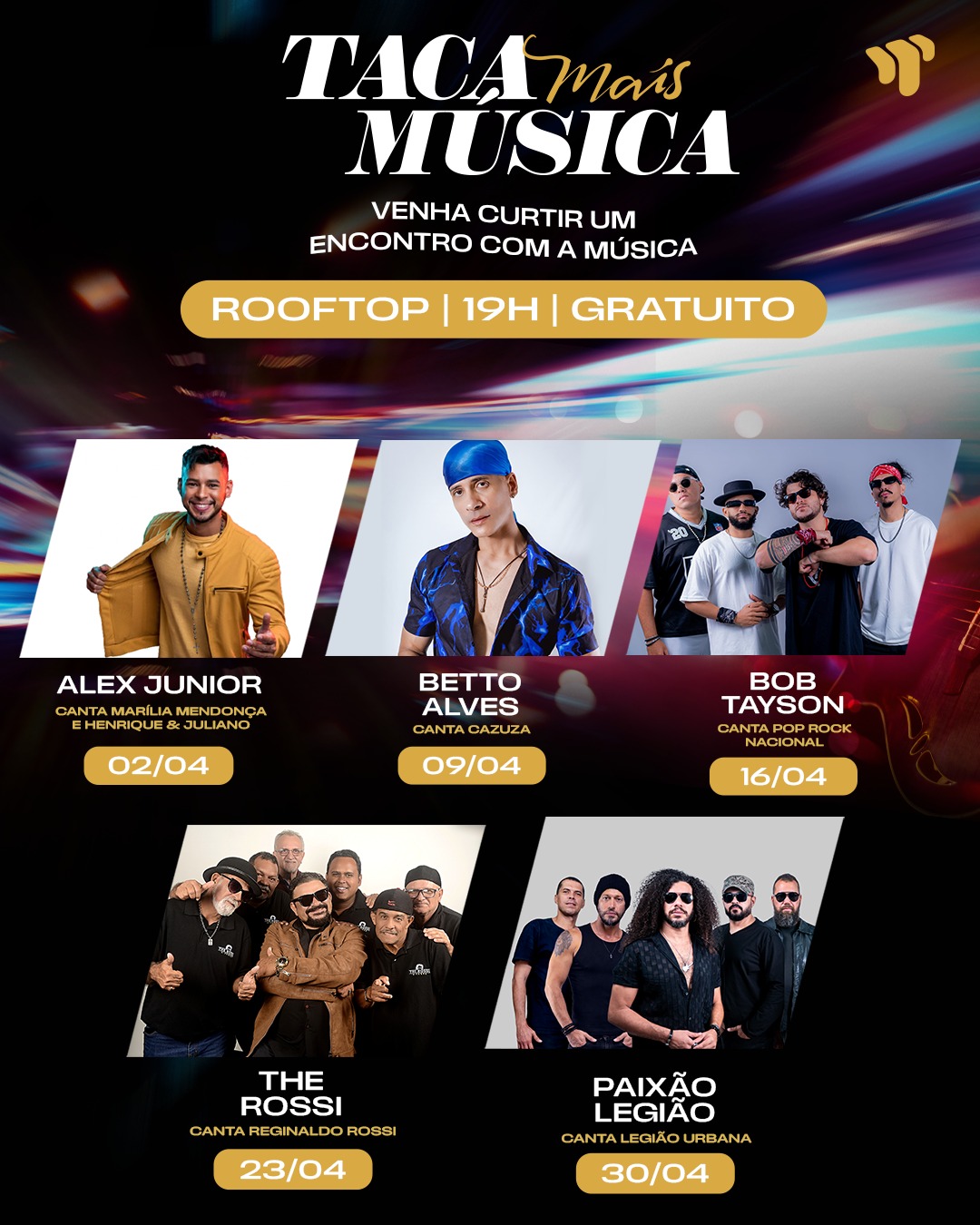 Com uma programação que transita por diferentes estilos musicais, o Taca Mais Música segue ao longo do mês de abril com novas atrações. Estão previstos shows que vão do tributo a Cazuza ao pop rock nacional, passando por clássicos regionais e rock nacional que marcaram gerações.