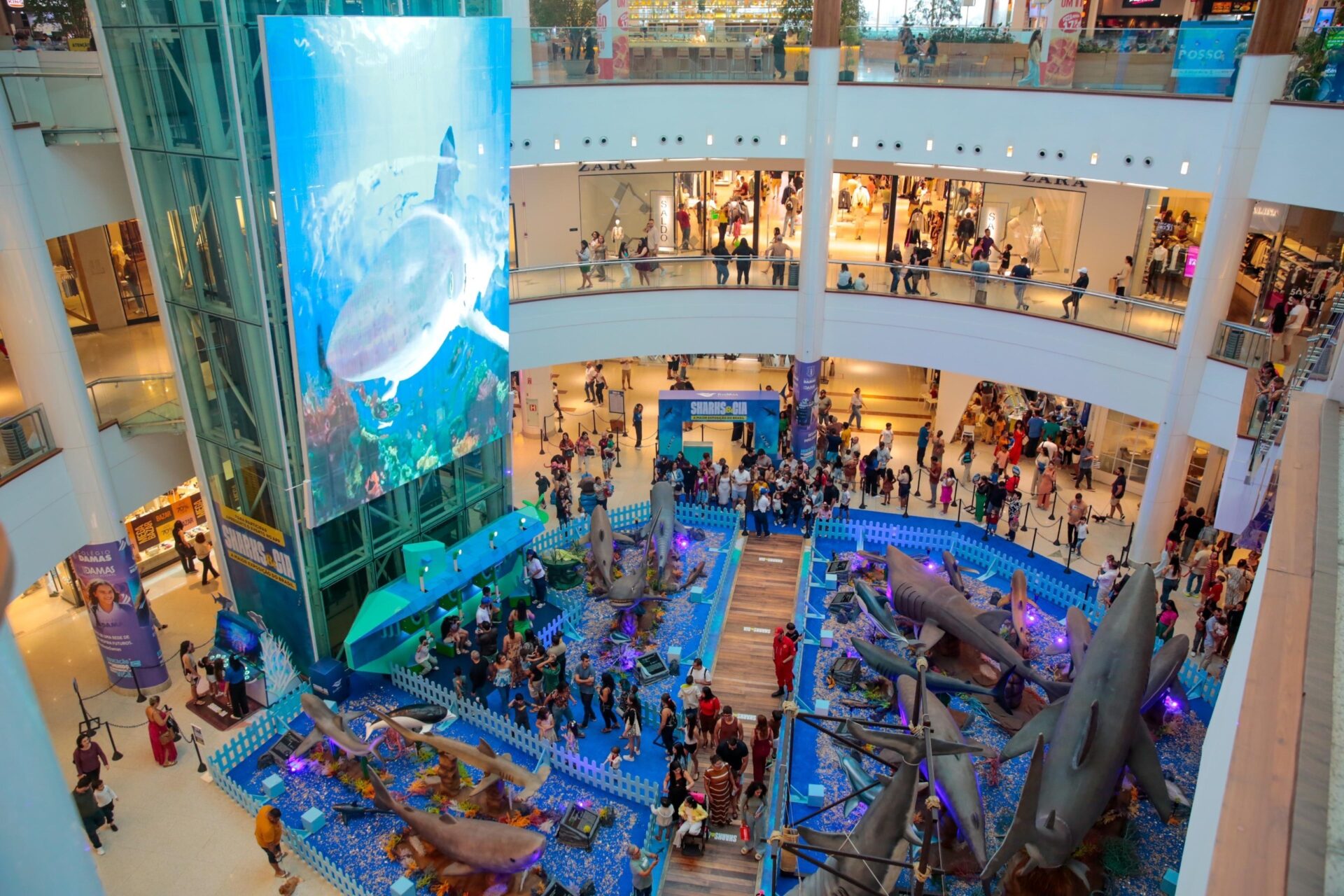 Na Praça de Eventos 1, no Piso L1, o público pode visitar gratuitamente a maior exposição de réplicas animatrônicas de tubarões do Brasil. São mais de 20 espécies em tamanho real, com sons, movimentos e interações como realidade virtual e jogos educativos. A visitação vai até 31 de julho e o acesso é gratuito, mediante inscrição pelo App RioMar Recife.