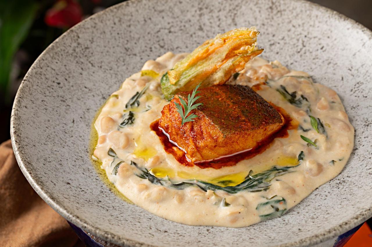 O cardápio curado pela chef Katia Barbosa traz petiscos, entradas e pratos principais que mesclam tradição e inovação. Entre os destaques: